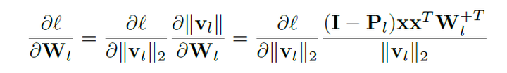 对这个reshape后的权重矩阵W,我们可以同样的根据高维weight normalization 的公式,来得到normalization后的权重矩阵,即