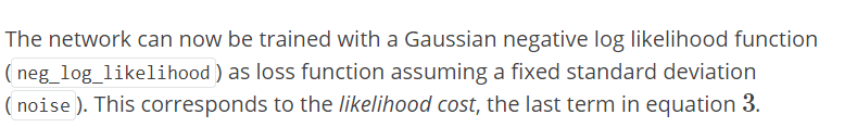 model.compile(loss=neg_log_likelihood, optimizer=optimizers.Adam(lr=0.03), metrics=['mse'])