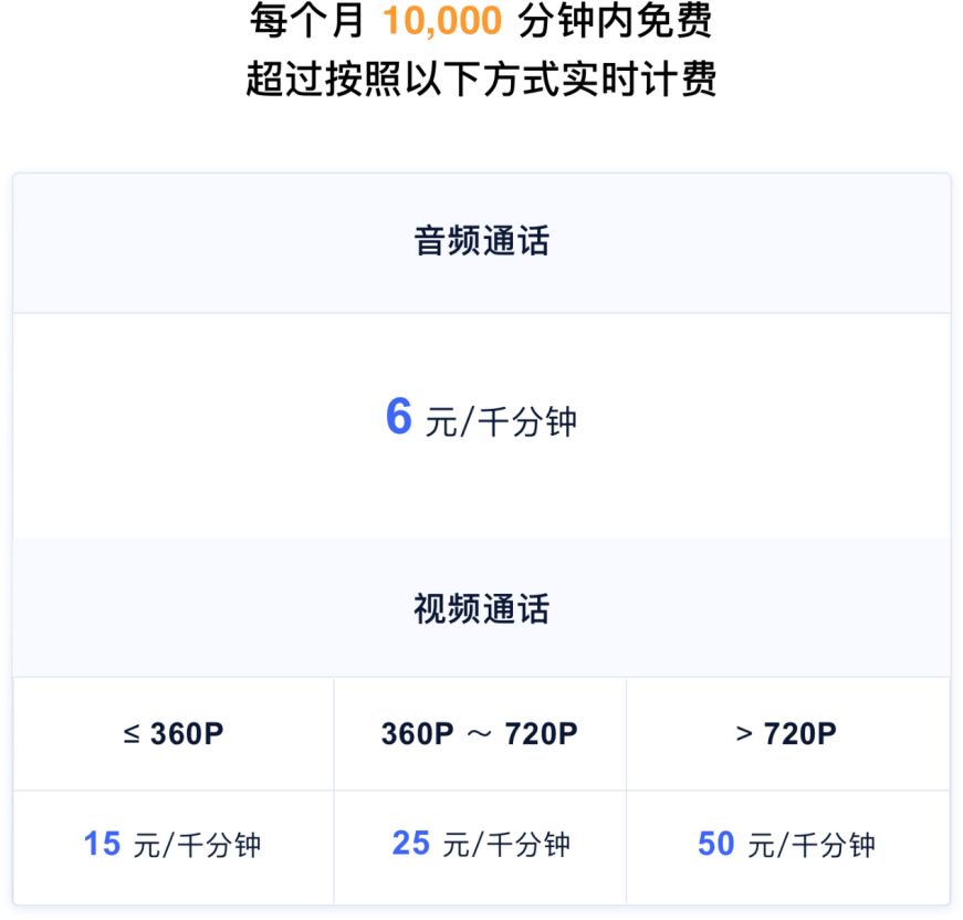 目前URTC每月1万分钟内免费,超出配额范围的计费方式如图所示:
