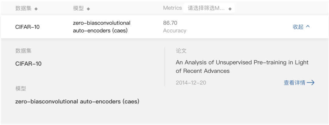 再往下拉页面,就可以看到历史上在该任务上取得过 SOTA 的榜单了。