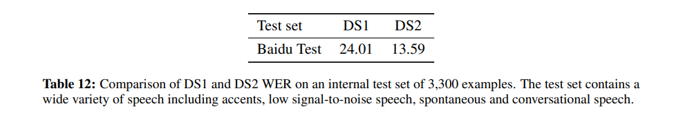 下图所示为 Deep Speech 1 与 Deep Speech 2 的单词错误率比较结果。Deep Speech 2 的单词错误率明显更低。