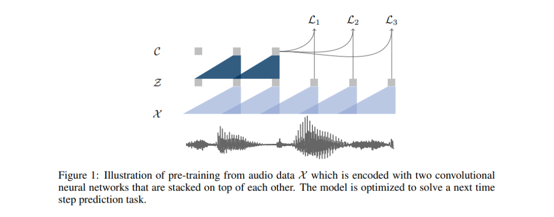 预训练中使用的方法,是优化该模型以实现利用单一上下文进行未来样本预测。该模型将原始音频信号作为输入,而后应用编码器网络与上下文网络。