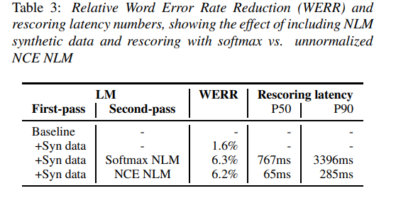 下图所示为该模型给出的一部分结果。其通过从 NLM 生成的合成数据获得了我 1.6% 的相对 WER。