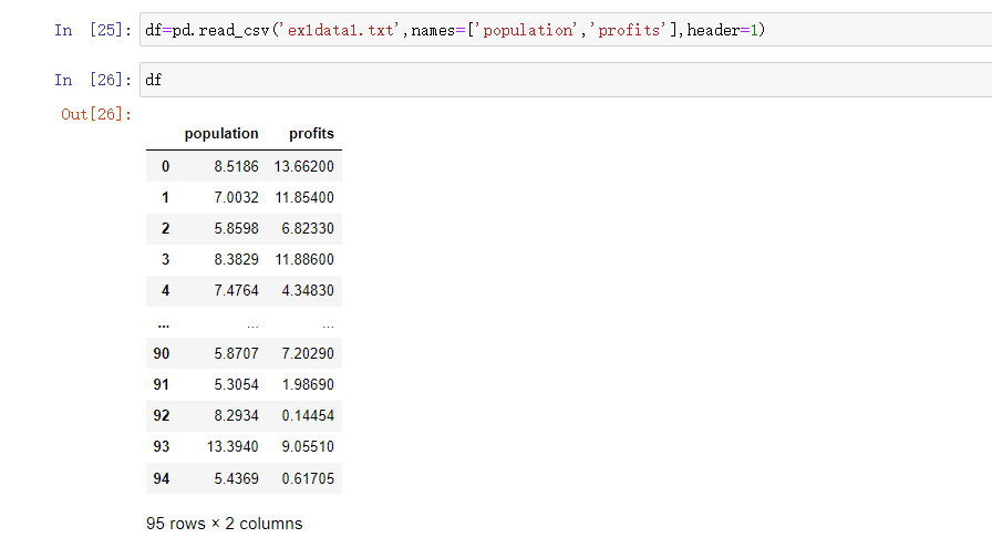 如果我想从第二行开始读取数据集,那我们只需要设置header参数: