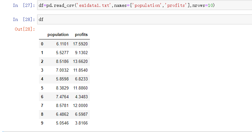 如果我们只想读取10行数据,我们只需要设置nrows参数:
