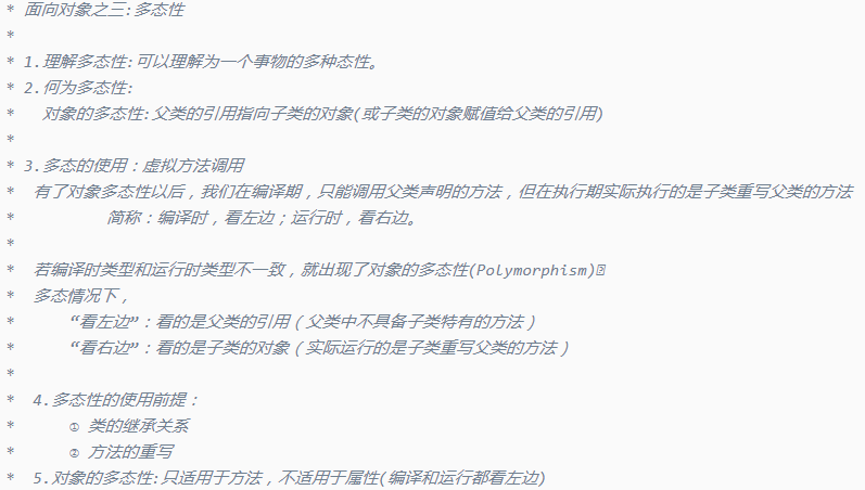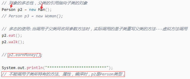 Ps:多态情况下,属性用父类,方法用子类,多态通过方法调用实现,不能通过属性“重载“实现。