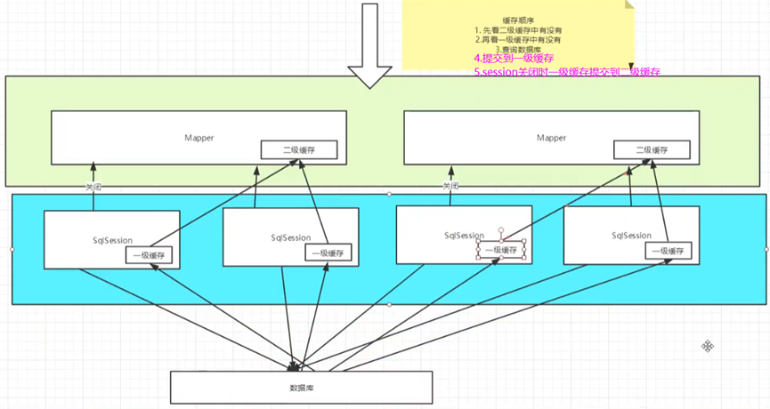 Ps:所有数据先放到一级缓存,只有会话(sqlSession)提交或关闭时才会提交到二级缓存!