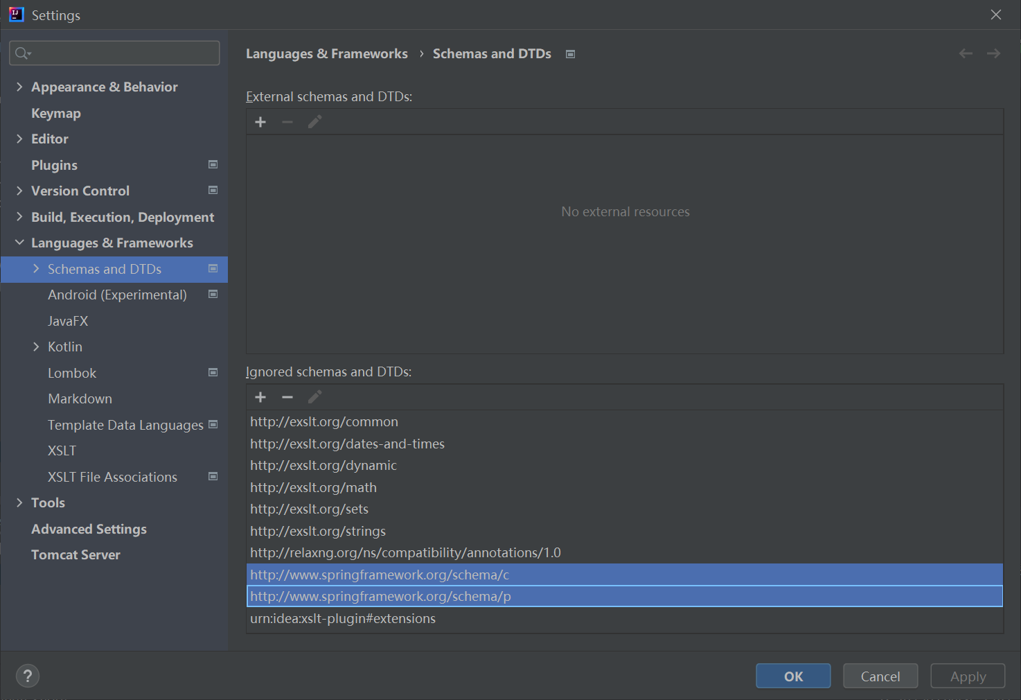 ps: IDEA会报命名空间错误,在设置中忽略即可