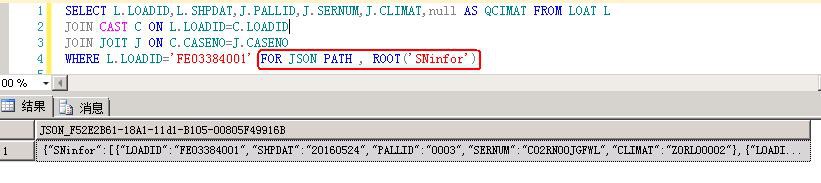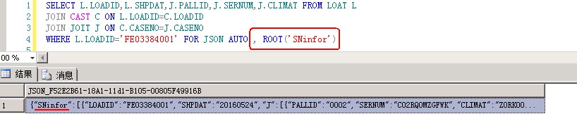 2、FOR JSON AUTO,Root(’’) :为JOSN加上根节点