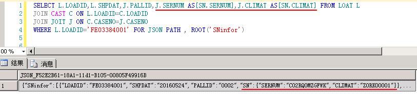 比如下面的SQL,增加了一个“SN”节点,把栏位SERNUM和CLIMAT放在里面: