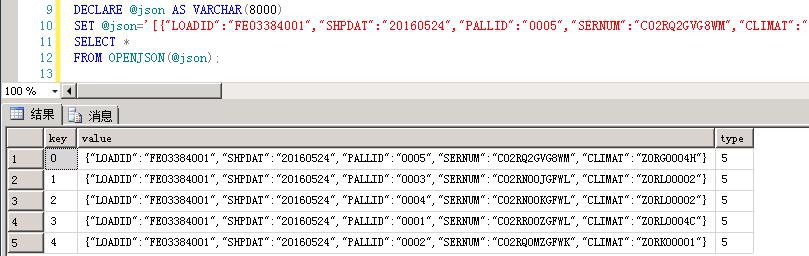 1、使用OPENJSON()函数: