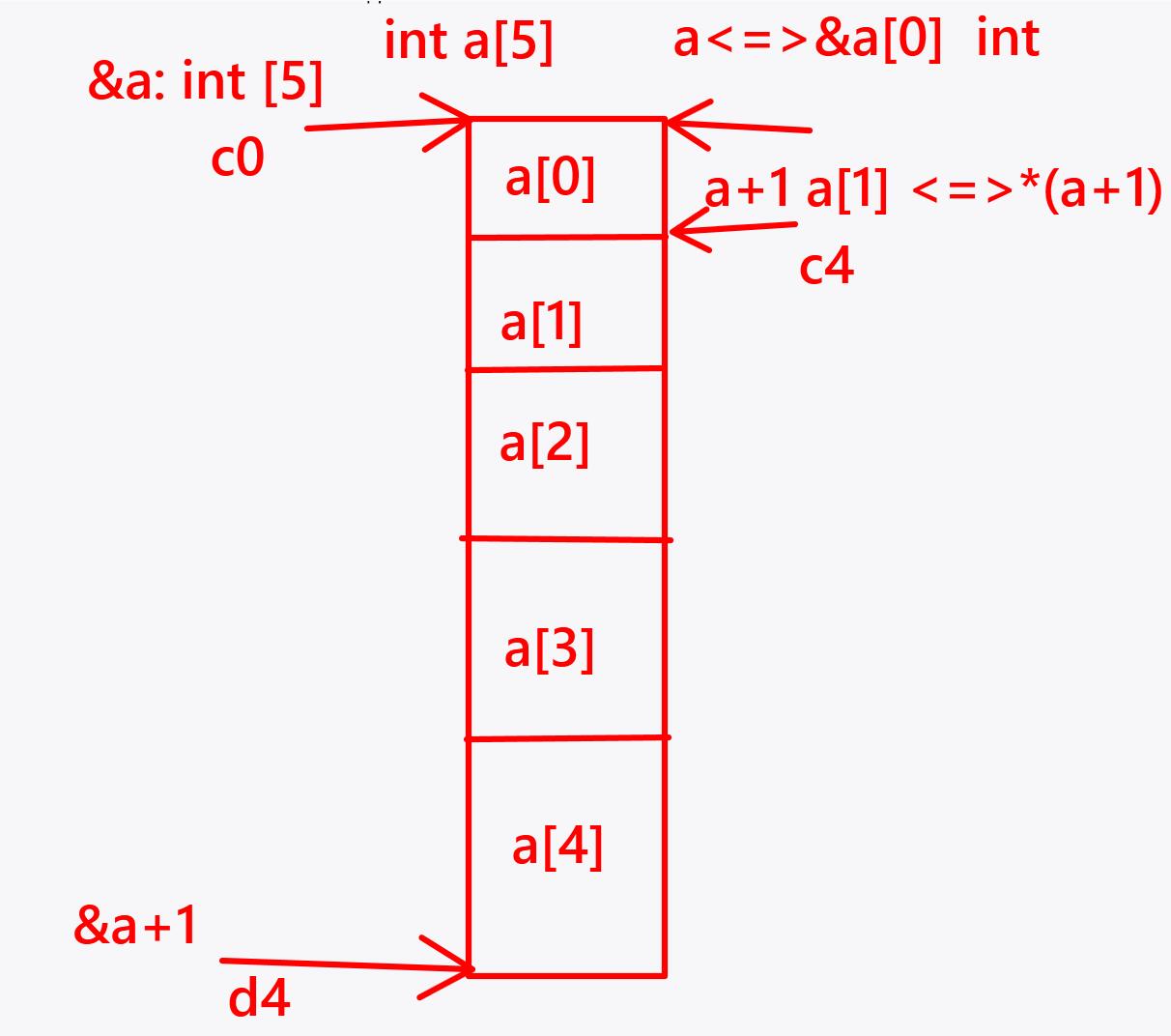 一维数组a[5],a是一级指针,&a是二级指针(可以看成是行指针)