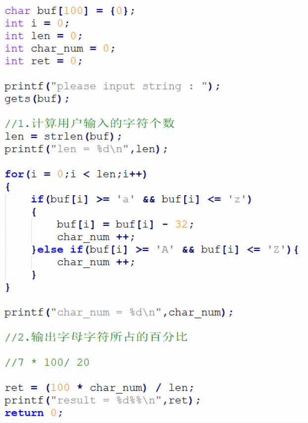第四阶段—数组—字符数组:把输入的小写字符全部转换为大写字符,并且 统计大写字母字符的个数,然后在统计大写字母字符在用户输入的字符中所占的百分比.