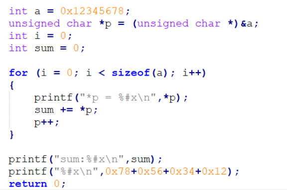 第四阶段—一级指针的特点:unsigned int reg = 0x12345678; 要求把reg的每个字节的数据取出来相加,输出最 后的结果.