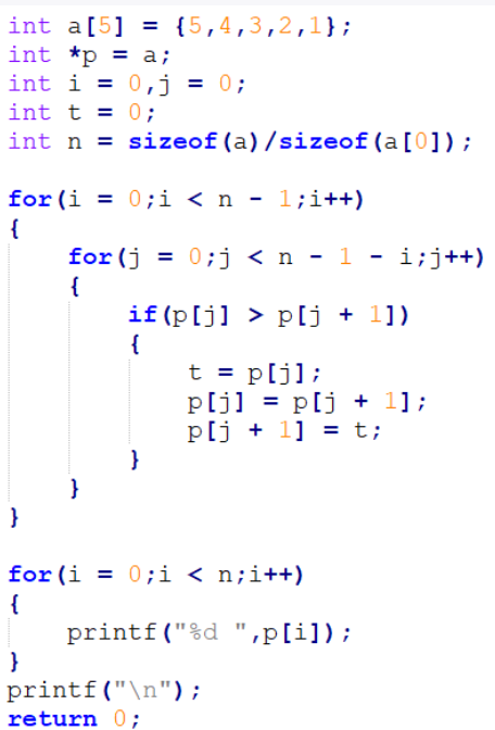 第四阶段—一级指针的特点:int a[5] = {1, 4, 3, 5, 3};要求通过指针来实现把数组从小到大进行排序。(冒泡排序)
