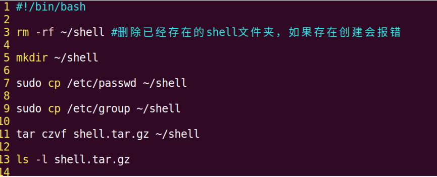 第三阶段—shell脚本—如何运行一个shell脚本文件?:请按下列要求写一个脚本备份相关文件 0. 写一个home.sh 脚本,实现以下 内容。 1、在/home/linux新建一个目录shell 2、拷贝/etc/passwd和/etc/group文件到你的shell目录 3、对shell进行压缩,压缩成shell.tar.gz 6、显示shell.tar.gz的大小。