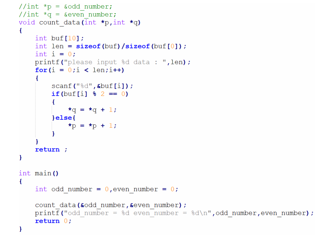 函数——统计数组中奇数的个数赋值给main函数的odd_number, 偶数的个数赋值给main函数中even_number .