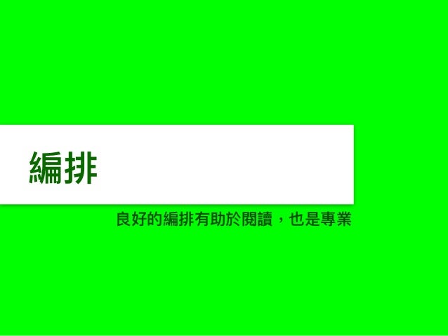- 編排 良好的編排有助於閱讀,也是專業