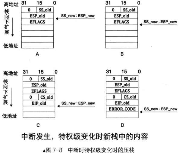 和之前调用调用门时栈会对栈操作,触发中断时栈也会有变化,过程和触发调用门的类似。
