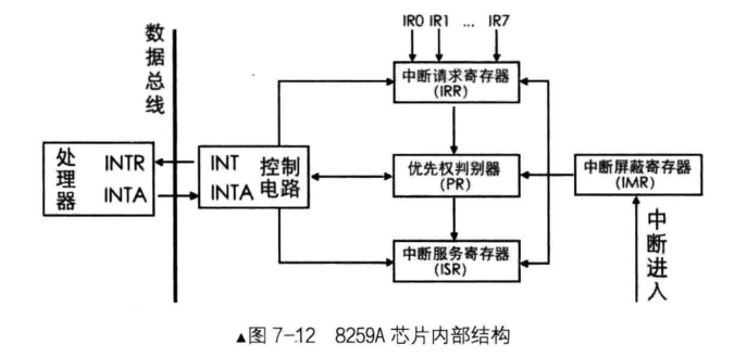 最后讲一下可屏蔽中断的代理8259A芯片,当多个中断到来时,代理可以用队列(IRR)存储中断,判别哪个中断会被处理器处理,并与处理器通信。