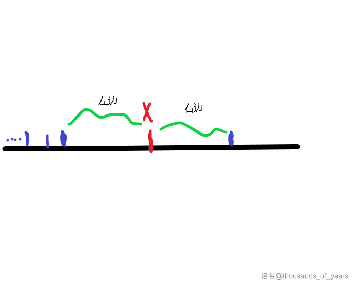 举个例子,我们定义当前点到上当前决策点为右边,上一个决策点到当前决策点为左边,\(x\) 为当前决策点。