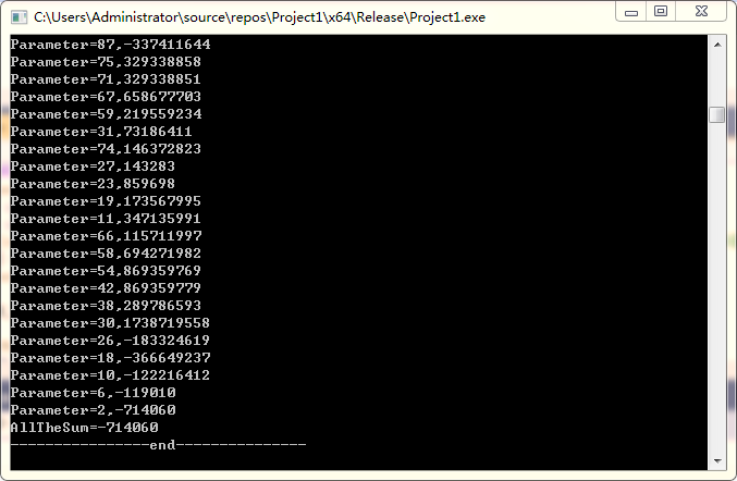 #include<Windows.h> #include<strsafe.h>// 缓冲区处理 #define MAX_THREADS 100 #define BUF_SIZE 255 typedef struct _MyData //我的数据类,包含两个int类型值 { int val1; int val2; }MYDATA, * PMYDATA; int allTheSum = 0;// 给所有人算的数 double My_SQRT(double Num, int times)// 用迭代法开根号 { double last = 1; for (int i = 0;i < times;i++)last = (last + Num / last) / 2.0; return last; } DWORD WINAPI ThreadProc(LPVOID lpParam)// LPVOID 是 void* 的意思 { HANDLE hStdout; PMYDATA pData; TCHAR msgBuf[BUF_SIZE]; // TCHAR 是 WCHAR 的别名,是宽字符的意思,也就是两字节的字符类型,类似汉字 size_t cchStringSize; DWORD dwChars; hStdout = GetStdHandle(STD_OUTPUT_HANDLE); //得到标准输出设备的句柄,用于打印 if (hStdout == INVALID_HANDLE_VALUE)return 1; pData = (PMYDATA)lpParam; // 将void*类型的参数强转为MYDATA*的类型 // 双引号前加L表示是宽字符 switch (pData->val1 % 7)// 当前数据标记,谁先到谁先算 { case 0:allTheSum += 10;break; case 1:allTheSum -= 7;break; case 2:allTheSum *= 6;break; case 3:allTheSum /= 3;break; case 4:allTheSum = 2 * allTheSum + 1;break; case 5:allTheSum = (allTheSum + 1) * allTheSum / 2;break; case 6:allTheSum = My_SQRT(allTheSum, 10);break; default: break; } StringCchPrintf(msgBuf, BUF_SIZE, L"Parameter=%d,%d\n", pData->val1, allTheSum);// 代替sprintf StringCchLength(msgBuf, BUF_SIZE, &cchStringSize); // 代替strlen WriteConsole(hStdout, msgBuf, cchStringSize, &dwChars, NULL);// 代替printf HeapFree(GetProcessHeap(), 0, pData);// 释放内存 return 0; } int main(int argc, TCHAR* argv[]) { PMYDATA pData; DWORD dwThreadId[MAX_THREADS]; HANDLE hThread[MAX_THREADS]; int i; printf("----------------begin-----------------\n"); for (i = 0;i < MAX_THREADS;i++) { pData = (PMYDATA)HeapAlloc(GetProcessHeap(), HEAP_ZERO_MEMORY, sizeof(MYDATA));// 申请内存 if (pData == NULL) ExitProcess(2); pData->val1 = i; pData->val2 = i; hThread[i] = CreateThread(NULL, 0, ThreadProc, pData, 0, &dwThreadId[i]);// 创建线程,在这个函数中不要用CRT库函数,不然会内存泄漏 if (hThread[i] == NULL) ExitProcess(i); } for (i = 0;i < MAX_THREADS;i++) { WaitForSingleObject(hThread[i], INFINITE);// 等待第i个线程结束 CloseHandle(hThread[i]);// 关闭线程对象,释放系统资源 } printf("AllTheSum=%d\n", allTheSum); printf("----------------end---------------\n"); getchar(); return 0; }