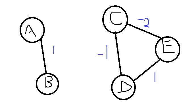 这是一个非连通图.我们假设起点为A点,那么右边的CDE三点构成了一个负权环.