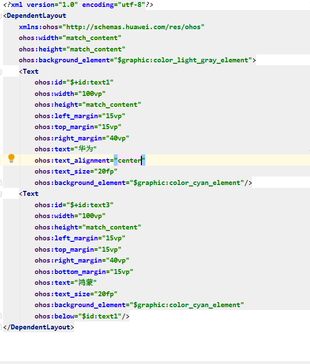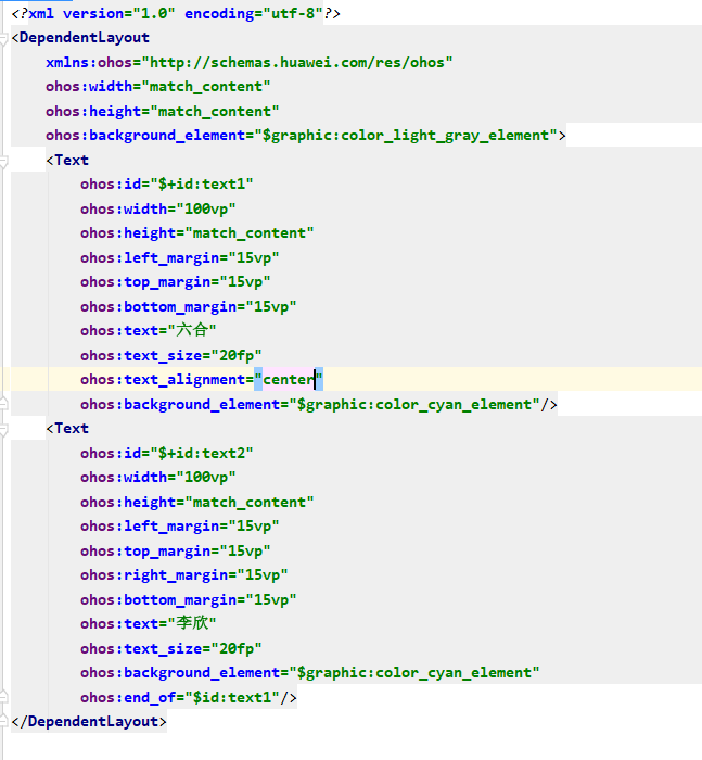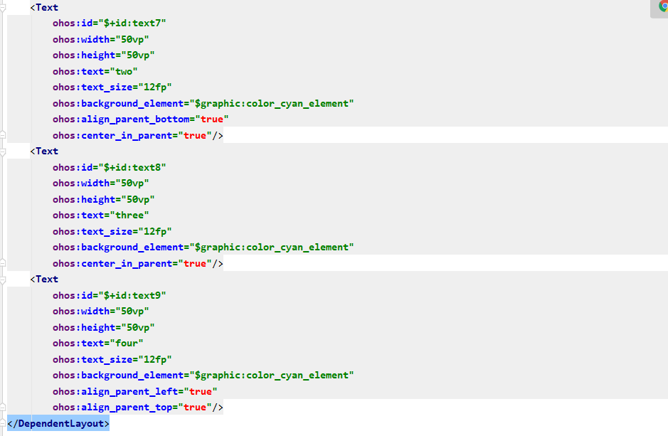 DependentLayout的排列方式是相对于其他同级组件或者父组件的位置进行布局。