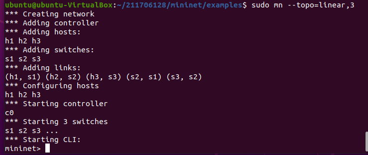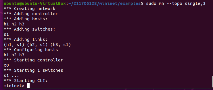 三、使用Mininet可视化工具,生成下图所示的拓扑,并保存拓扑文件名为学号.py。