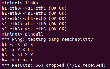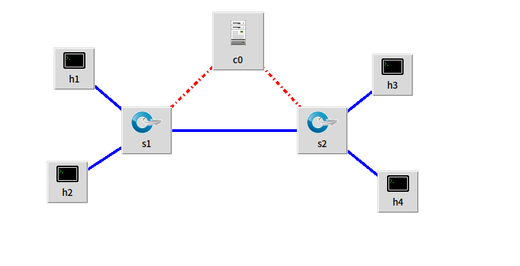 2、使用Mininet搭建的SDN拓扑,如下图所示,要求支持OpenFlow 1.3协议,主机名、交换机名以及端口对应正确。