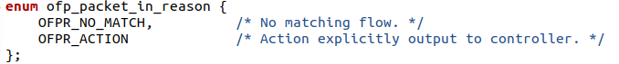 ofpt packt in产生的原因有两种,一种是没匹配到流表,另一种是匹配到了,动作是转发的控制器