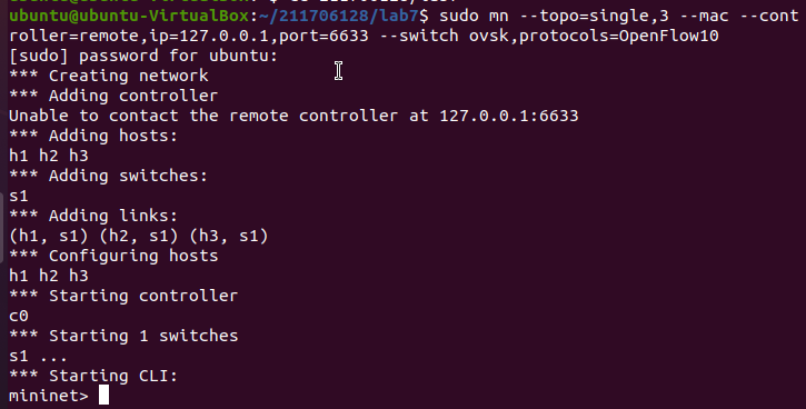 (1) 利用Mininet平台搭建下图所示网络拓扑,并连接OpenDaylight