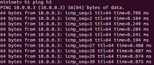 (3) 编写Python程序,调用OpenDaylight的北向接口下发硬超时流表,实现拓扑内主机h1和h3网络中断20s。