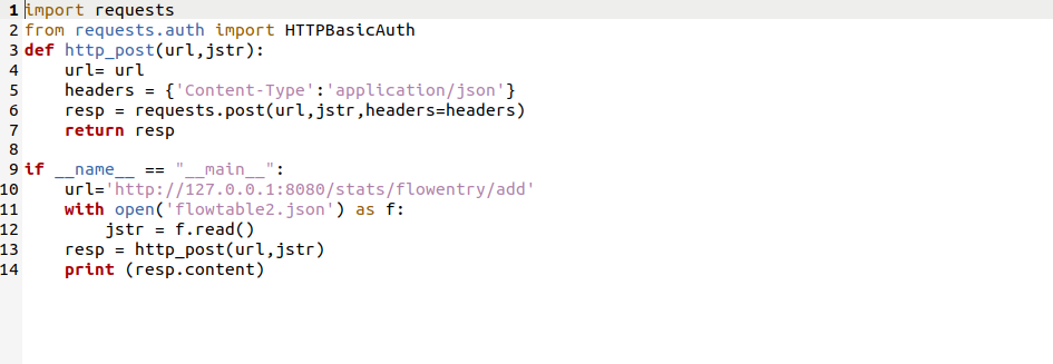 (2) 编写Python程序,调用OpenDaylight的北向接口下发指令删除s1上的流表数据。