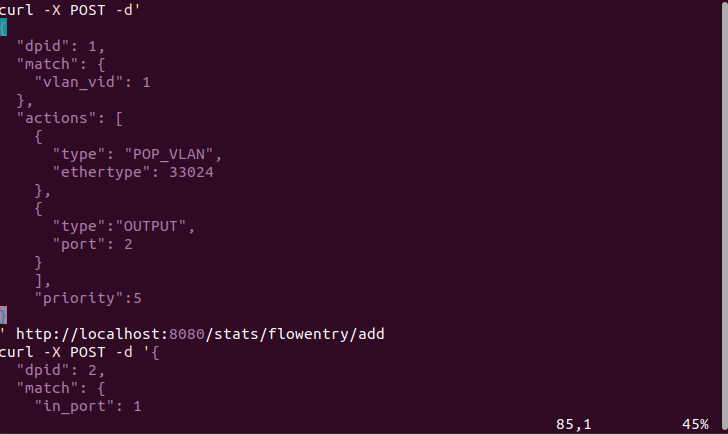 (3) 整理一个Shell脚本,参考Ryu REST API的文档,利用curl命令,实现和实验2相同的VLAN。