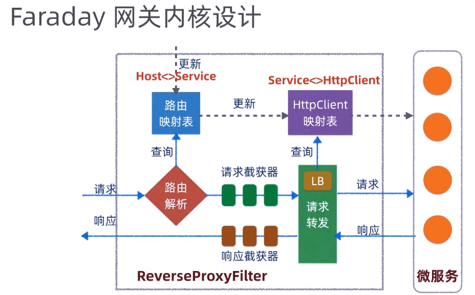 client请求 ---》代理网关---> 把请求转发到相应的服务,同时支持负载均衡,后端服务的健康检查--->服务