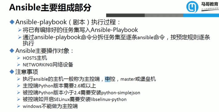 ansible是无需客户端代理的(Agentless), 能控制被控制端 是基于SSH