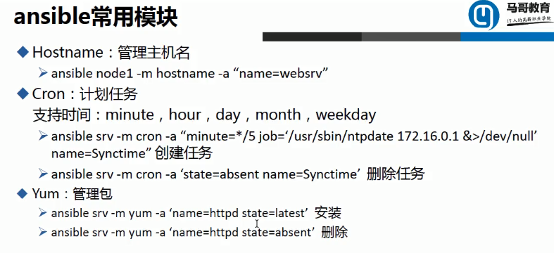ansible 192.168.103.62 -m hostname -a 'name=node-8'