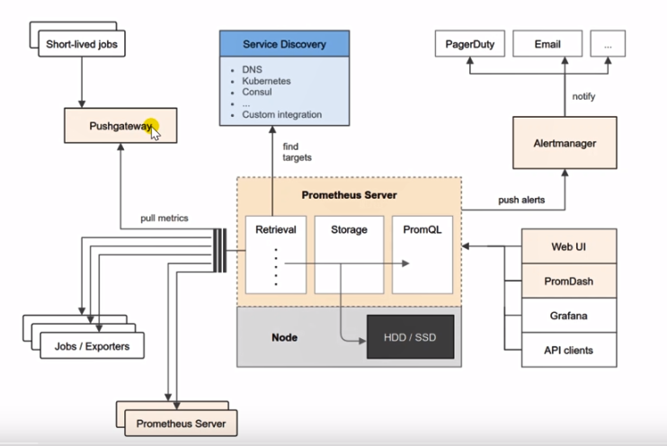 或者程序推送指标到 PushGateway ,然后 PrometheusServer再从pushGateway上抓取指标。