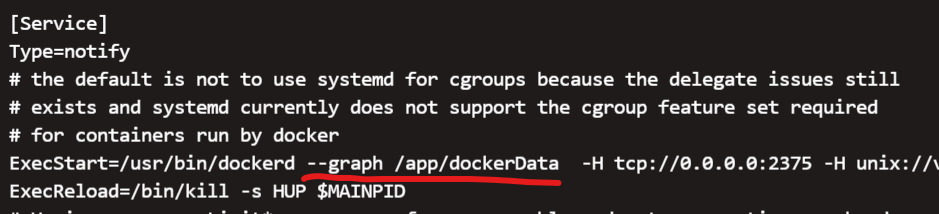 在 ExecStart=/usr/bin/dockerd --graph /new-path/docker 改成自己的路径就好
