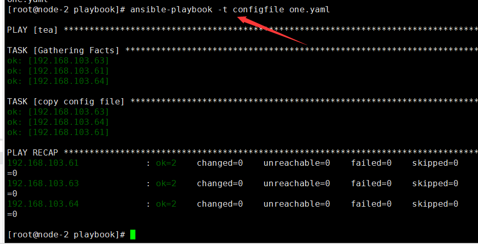 ansible-playbook -C one.yaml