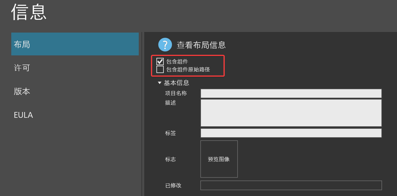 先点击信息,然后勾选“包含组件”