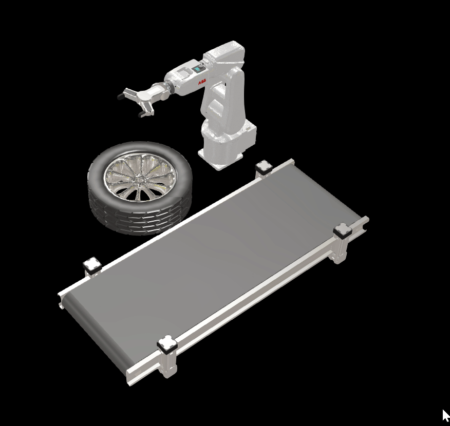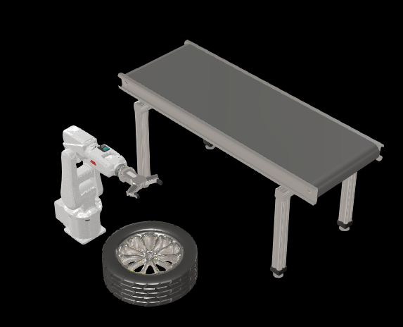 在开始界面里,分别搜索“conveyor”、“Car Tyer”、“IRB 120”、“RG6”并将它们放入3D视界。