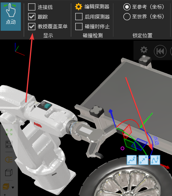 勾选后会出现如图三个图标,这三个图标的功能是用来记录示教点。