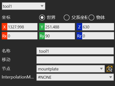如图,我们选择1号坐标系“tool1”
