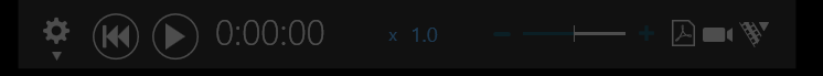 它们的功能分别为:“仿真设置”、“重置仿真”、“开始仿真”、“仿真时间”、“仿真倍数”、“倍数调整”、“仿真输出PDF、视频、VR”。