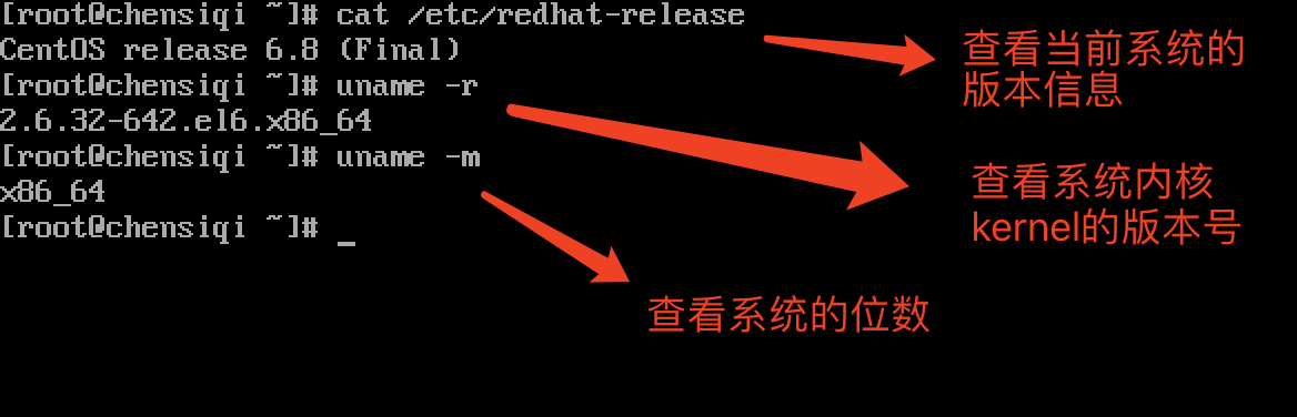 - 在登陆到Linux主机本地(非CRT连接的窗口)前,会显示系统的版本和内核。