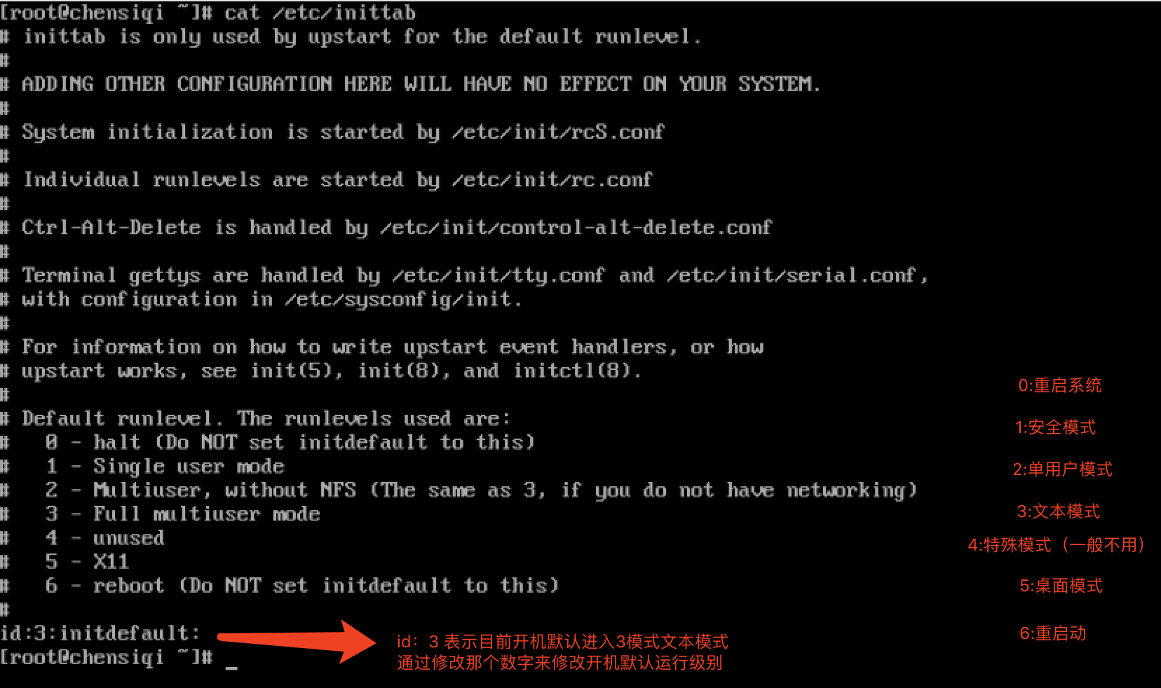 设定运行级别(runlevel)为3,即表示使用文本命令行模式管理Linux。