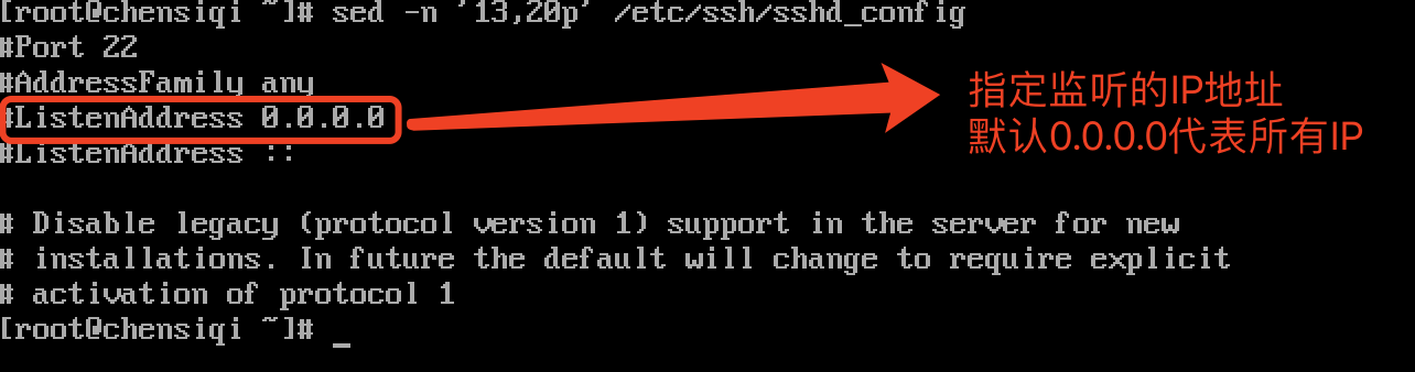 - Port:代表端口,后边的数字代表sshd服务监听的是哪个端口