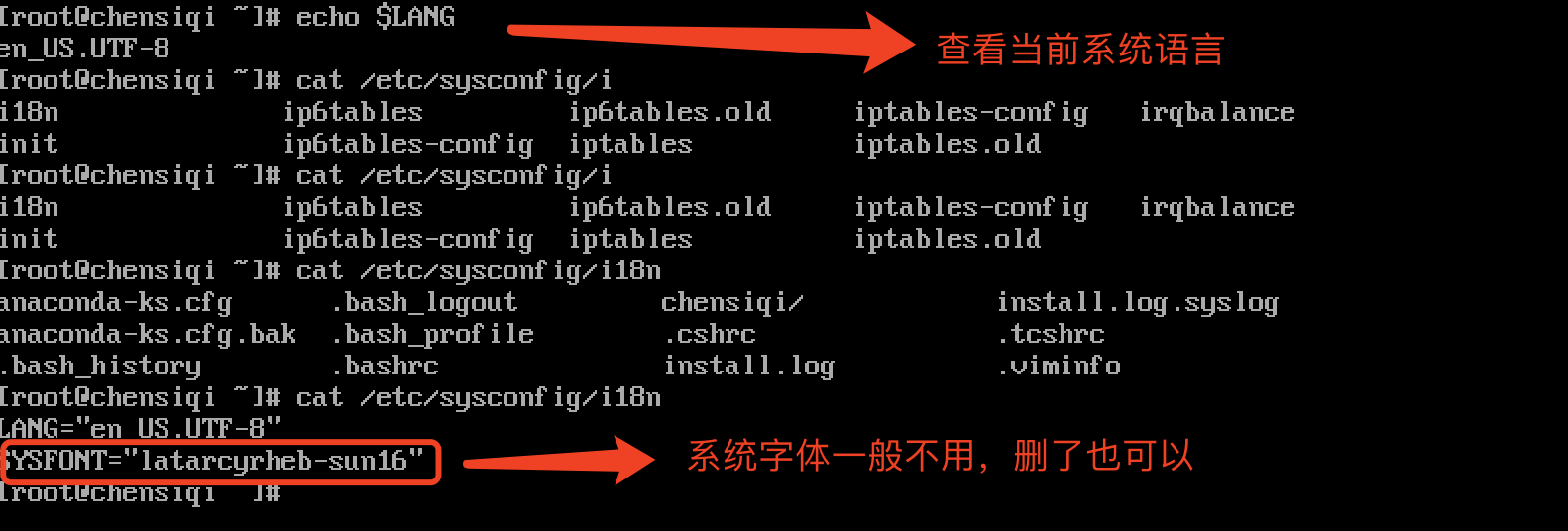 - UTF-8:非定长,1~4字节,广泛支持,MYSQL也使用UTF-8,企业广泛用。可以通过快捷的命令方式在/etc/sysconfig/i18n中添加如下内容,使其支持中文显示: